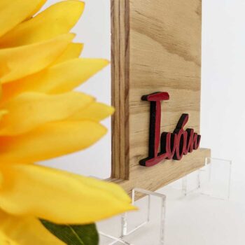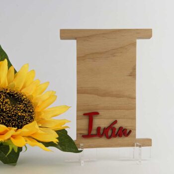 Como sabrás, el precio de nuestras letras varía en función de su altura, grosor, decoración y número de letras, esta posibilidad de poder poner de pie las letras de pared ha hecho furor entre nuestros clientes, no solo el tipo de personalización como puedes ver en la I mayúscula del ejemplo que es un diseño único de nuestra tienda, ahora también este soportaletras abre el abanico de posibilidades y ajuste de presupuesto para tu regalo