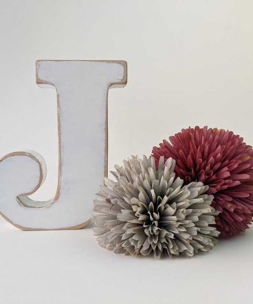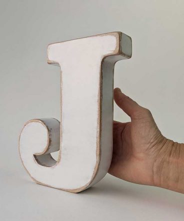J de madera blanca vintage con opción de personalizar y hecha de forma artesanal