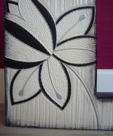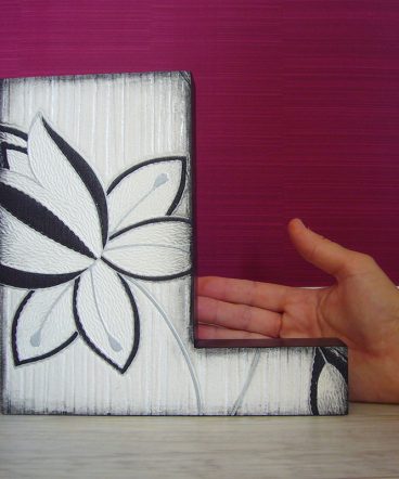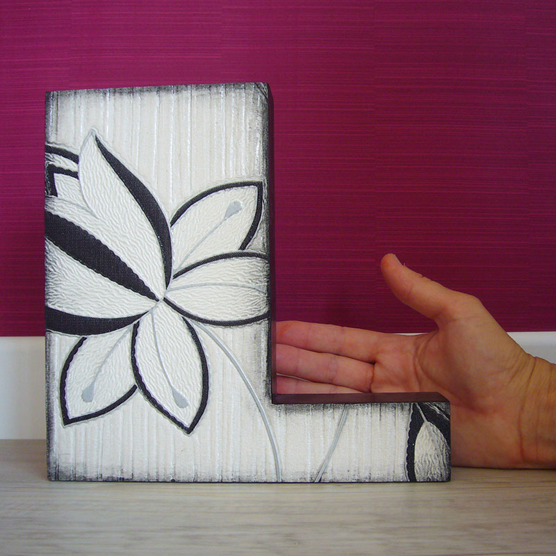 L decorada por ambas caras con papel lavable en color blanco roto, negro y plata