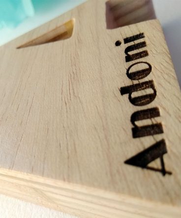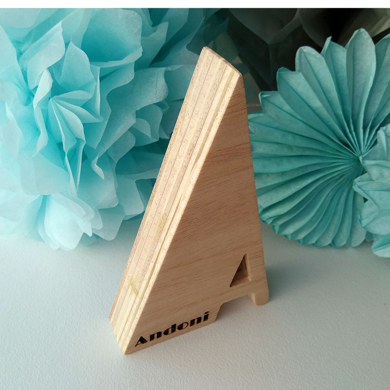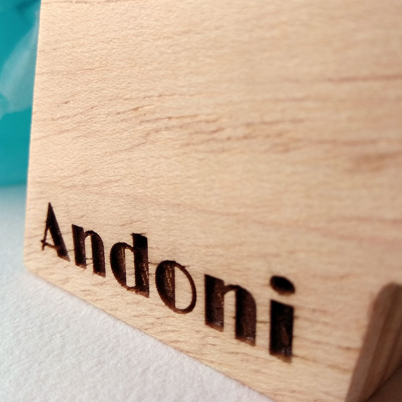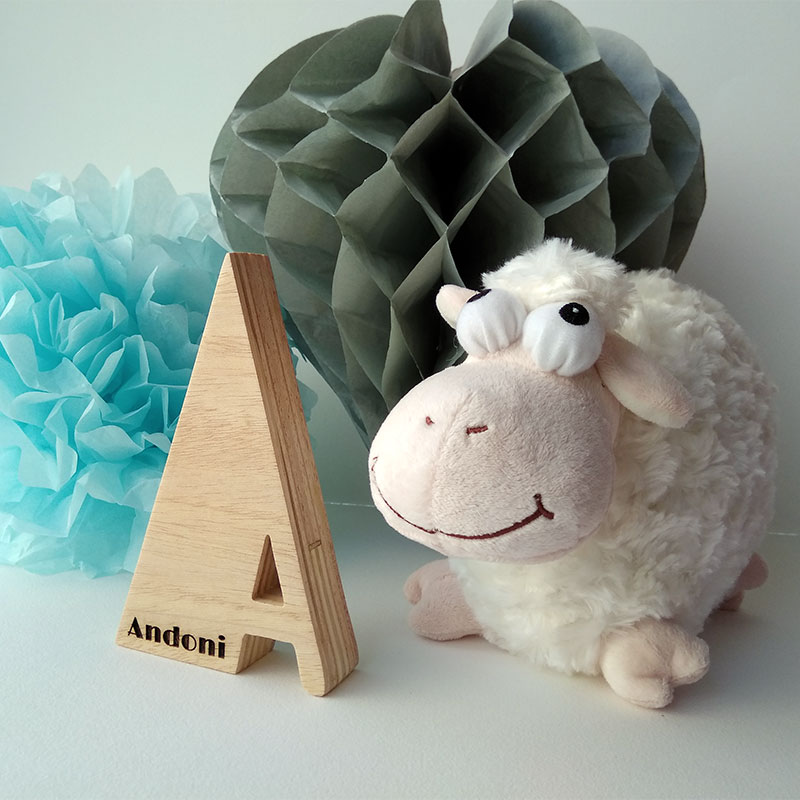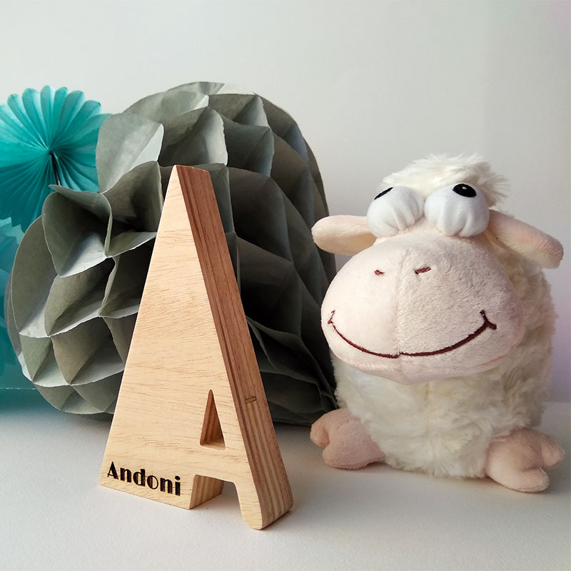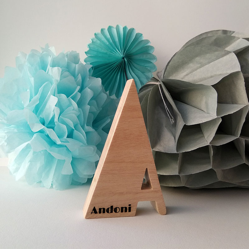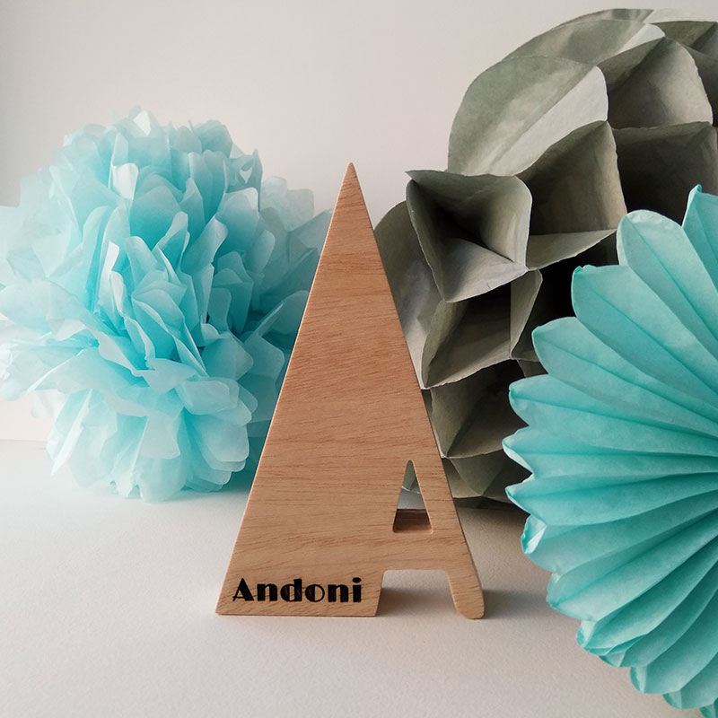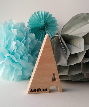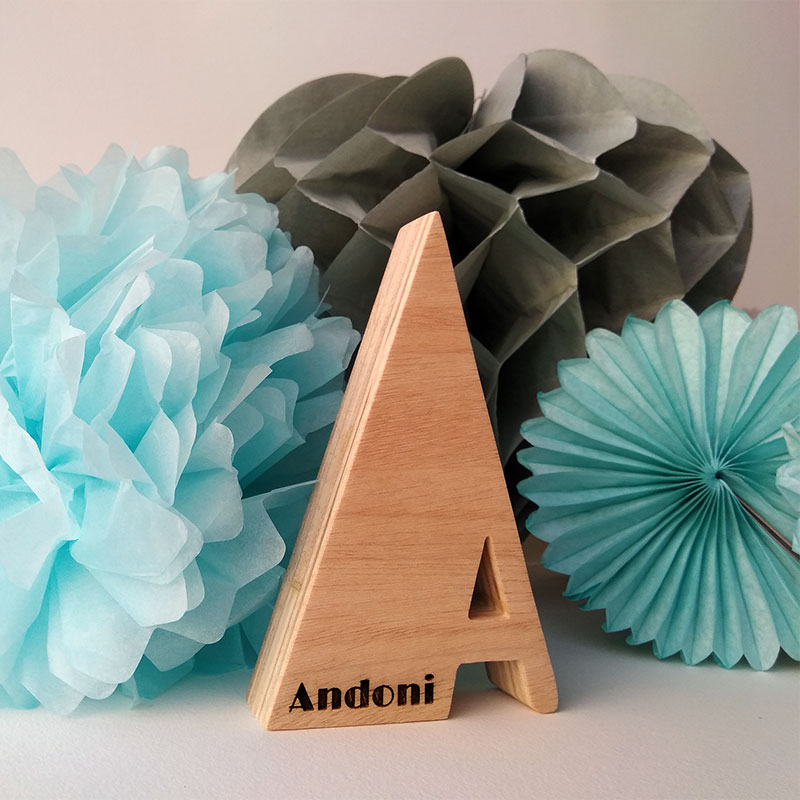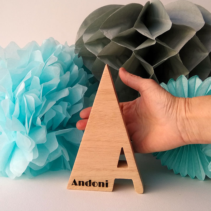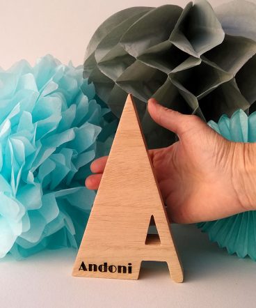 Letra A con el nombre de Andoni grabado con láser