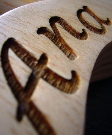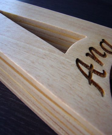 Letra A grabada con el nombre de Ana, hecha en madera de pino maciza natural.