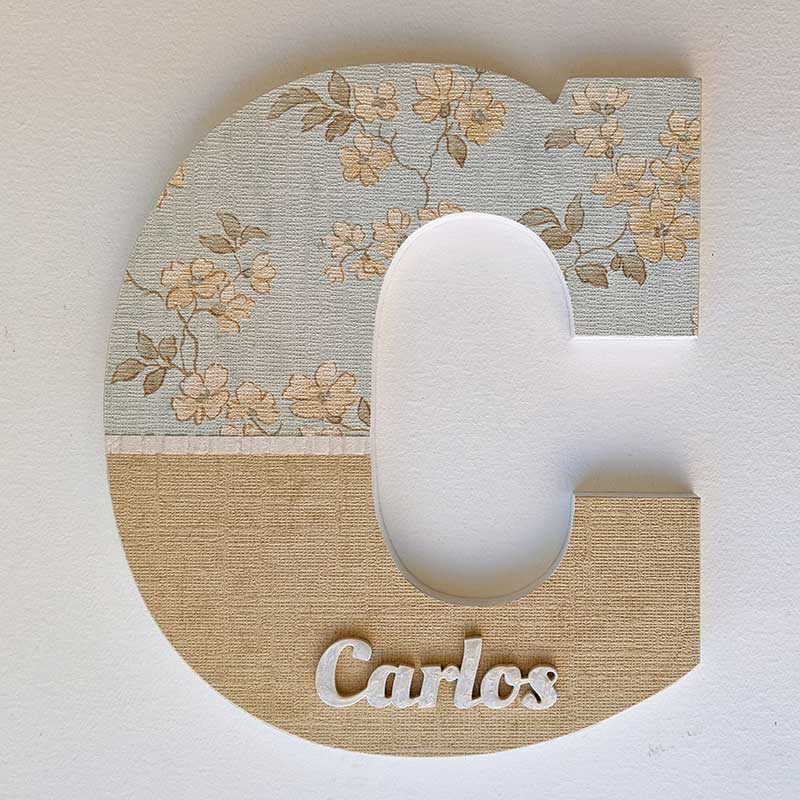En las fotografías adjuntas podrás ver en detalle la textura del papel pintado que hemos usado para decorar esta letra.
