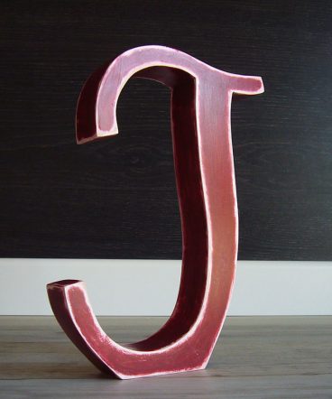 Esta Letra J rojo sobre blanco está hecha de madera de pino contrachapado y ha sido sometida a un tratamiento a base de productos naturales al agua de primeras marcas, para de esta forma alargar la durabilidad de este material noble, facilitando así su mantenimiento y limpieza de forma natural y sostenible.