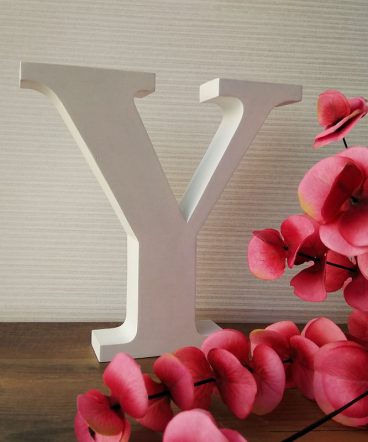 Esta letra Y griega personalizable en color blanco mide 20 cm de alto x 3,5 cm de grosor x 20 cm de alto