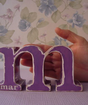 La terminación de esta letra con el nombre mar grabada en letra m malva es muy suave al tacto, tanto como un mueble, de fácil limpieza y mantenimiento