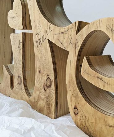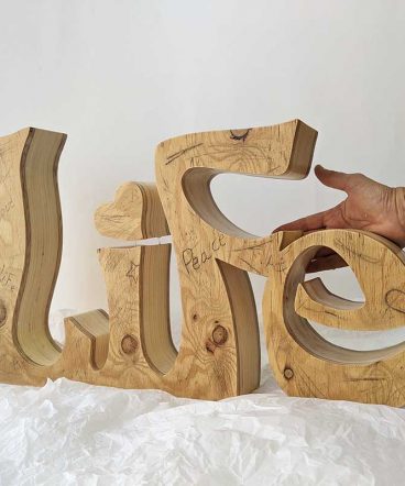 Decoración y tipografía solo de Decoraletras. Todas nuestras letras, al igual que esta palabra Life, pasan por un tratamiento de productos naturales al agua de primeras marcas, para conseguir alargar su durabilidad y facilitar su mantenimiento y limpieza de forma natural y sostenible, pasando por un proceso de varias manos de imprimación, lijados y barniz (satinado) correspondiente, consiguiendo de esta forma realzar la belleza de un material noble como la madera con un acabado muy suave al tacto, tanto como un mueble a pesar de su envejecido.
