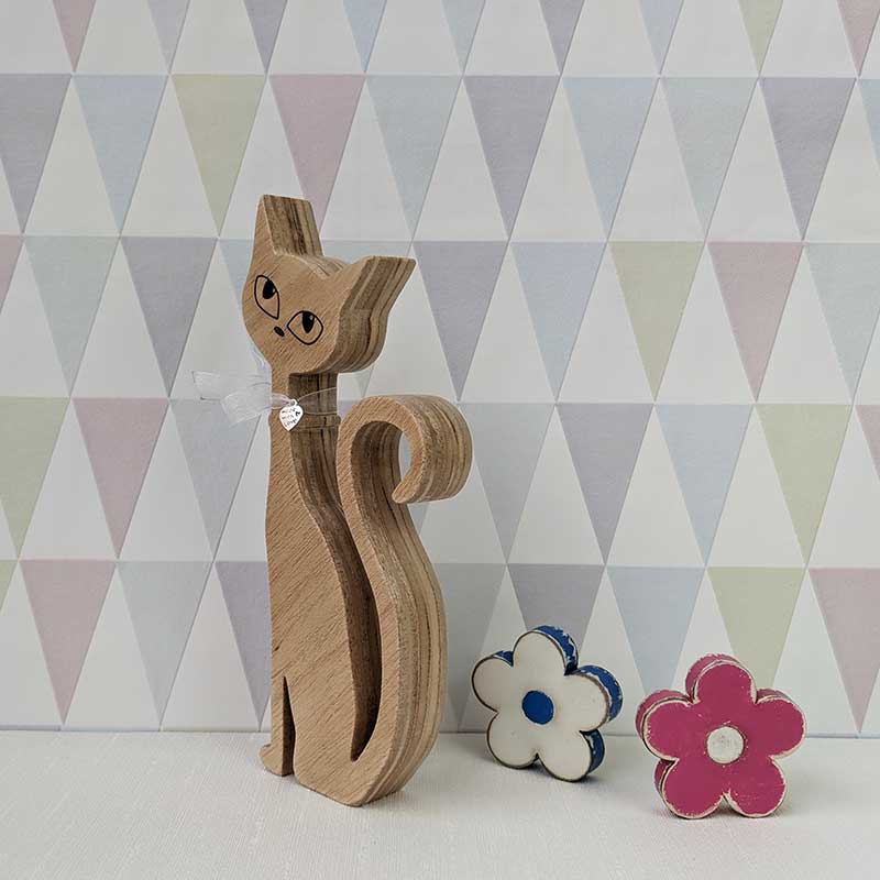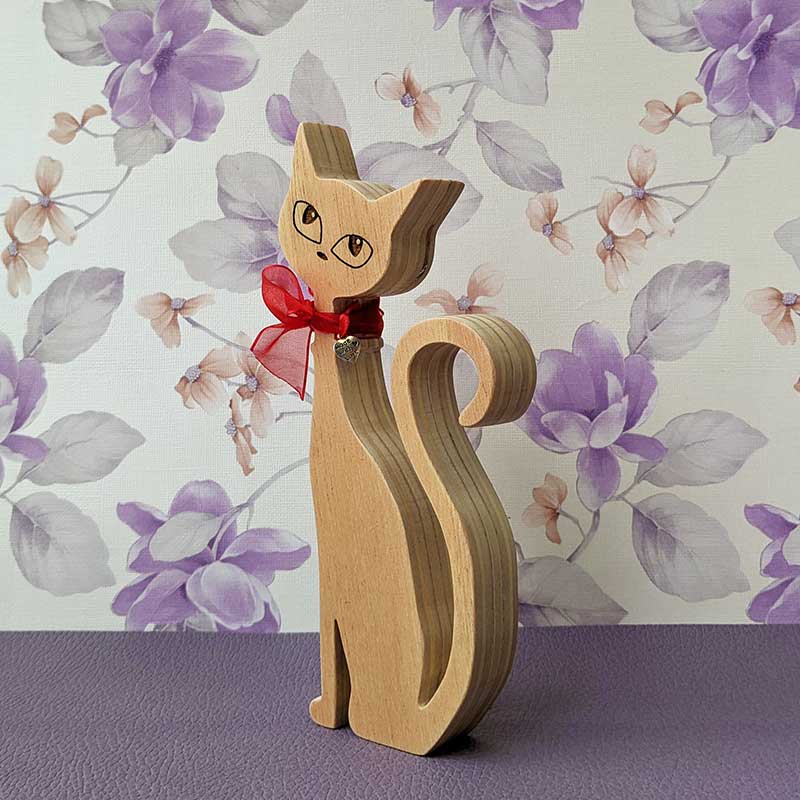 Silueta de gato de madera hecha de forma totalmente artesanal